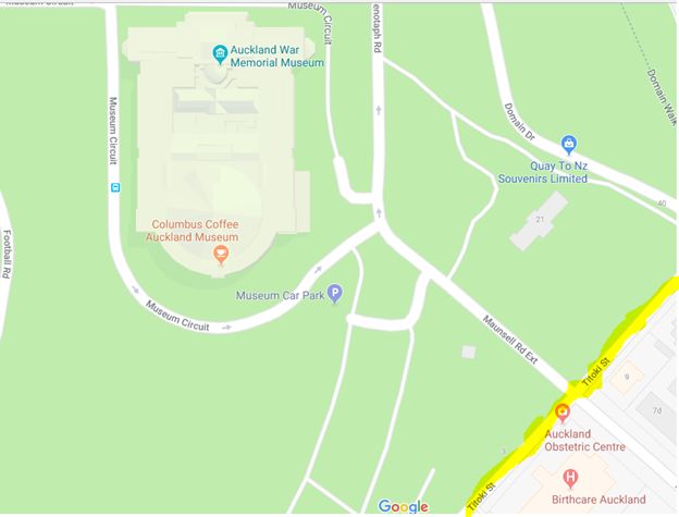 集合地点:Columbus Coffee Auckland Museum, Museum Circuit, Parnell, Auckland 1010 (下图橘黄色咖啡厅图标)